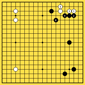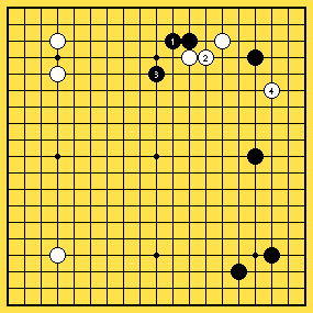 Territory is about the same but Black is thicker (JF: Of course he has an extra stone in the area). [JF Comparing what I read in pro commentaries to what I hear amateurs say, the word "thick" is many, many more times commoner in pro talk. I'd suggest that would repay a good discussion]![]()
