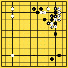 Now, apart from any comments on the above, what is Black's move 15?. A chance to use those joseki dictionaries?