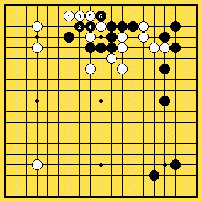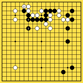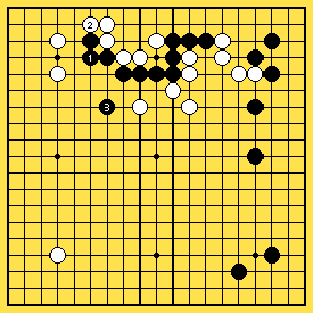 White g18 was rejected because it lets Black settle himself with profit too easily (see diagram): Black h17, White h18, Black j17, White j18, Black k18.