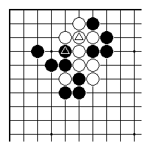 It is the last of these that is under discussion here. What we mean by 'local tally' is simple enough: keep track of the balance of plays in one part of the board. The excess after a ko of black over white stones, or white over black, is the result of several possible factors: who provoked the ko or started it, whether a move implying ko was ignored earlier, plays in the midst of a ko fight that enlarge or diminish its value. One must keep sight also of the way that the initiative may change hands in a ko fight, if the player winning the ko wasn't the one with first capture in it.