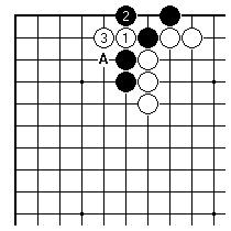 The presence here of the marked black stone means that Black can fight a ko to save this group. This sort of use of the first line stone to resist strongly is responsible for many remarkable ko tactics.