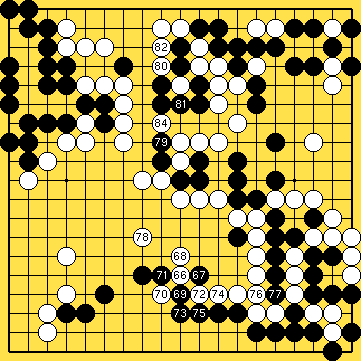 In the aftermath, White has to save two groups in the centre. Black won the game by a small margin.